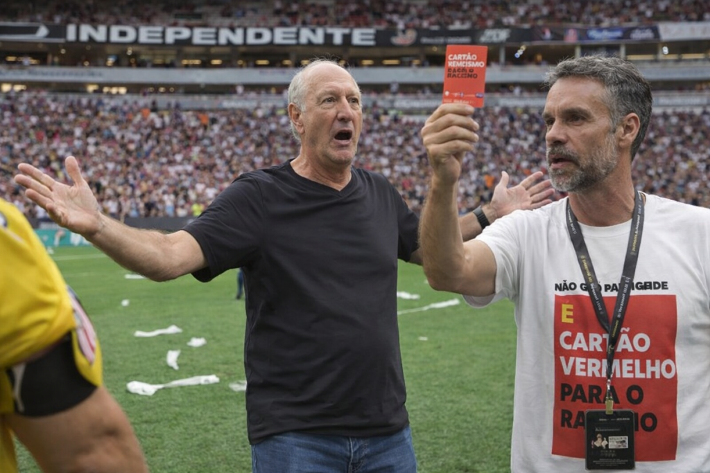 Esse povo dos memes não perdoa ninguém mesmo. Mandaram logo o frame exato do momento em que Arruda foi convidado a se retirar do gramado da Arena BRB… e, claro, com aquele espírito: “não basta a gasolina, tem que jogar o fósforo” 🔥⛽ Mas você está certo: essa imagem pede HUMOR, não sangue nos olhos. […]